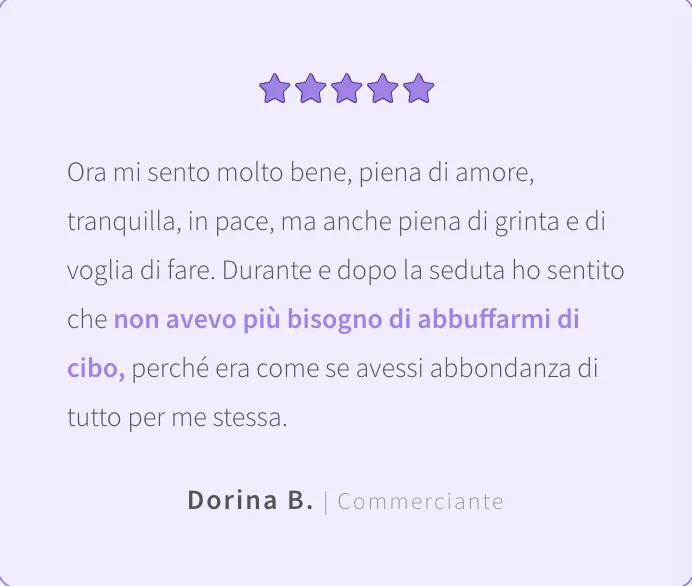 Attraverso l’ipnosi dolce e anni di ricerca nelle tecniche più efficaci, guida le persone a ritrovare il proprio centro e il proprio potere personale, sciogliendo blocchi e conflitti interiori alla radice.